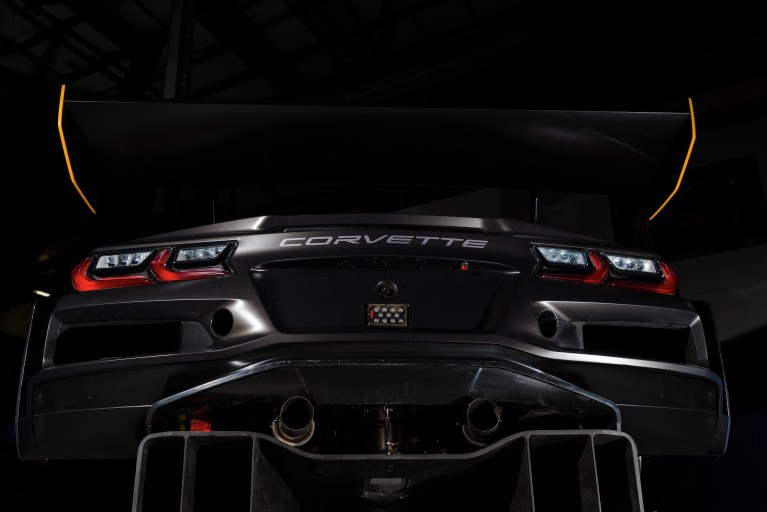 The Corvette Z06 GT3.R boasts a custom-made carbon rear diffuser that enhances its aerodynamic efficiency by generating a low-pressure area beneath the rear of the vehicle. This low-pressure zone increases the vehicle’s overall stability and grip without increasing drag when operating at high speeds.